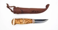 Bardzo poręczny nóż w tradycyjnym wykonaniu. Mała grubość głowni ze stali węglowej z szlifem skandynawskim daje świetne właściwości cięcia. Na co dzień niezastąpiony w kuchni. Sprawdzi się także w lekkich pracach biwakowych. Podcięcie głowni wraz z drewnianymi okładzinami, tworzy zagłębienie chroniące palec wskazujący, ale jednocześnie w tym miejscu występuje przewężenie drewnianych okładzin, tworząc podatne miejsce na ich możliwe wykruszenie w przypadku nieostrożnego uderzenia. Z tego względu do batonowania bym nie polecał. Istnieje wersja tego noża „Desert Romper” z mocniejszymi okładzinami z Micarty. Dedykowana skórzana pochwa, dzięki dodatkowej pętli dającej swobodę ruchów, jest bardzo praktyczna do noszenia przy pasie.