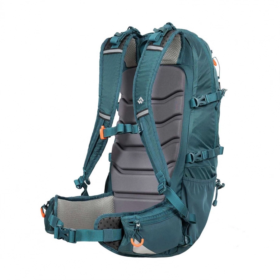 Tapered design is perfect for climbing. Shoulder straps contoured and filled with breathable sponge for high comfort. Comfortable, adjustable hip belts with pockets allow for better fit and weight distribution. The back of the backpack filled with neoprene and equipped with a pull-out frame ensures proper air circulation and moisture removal.