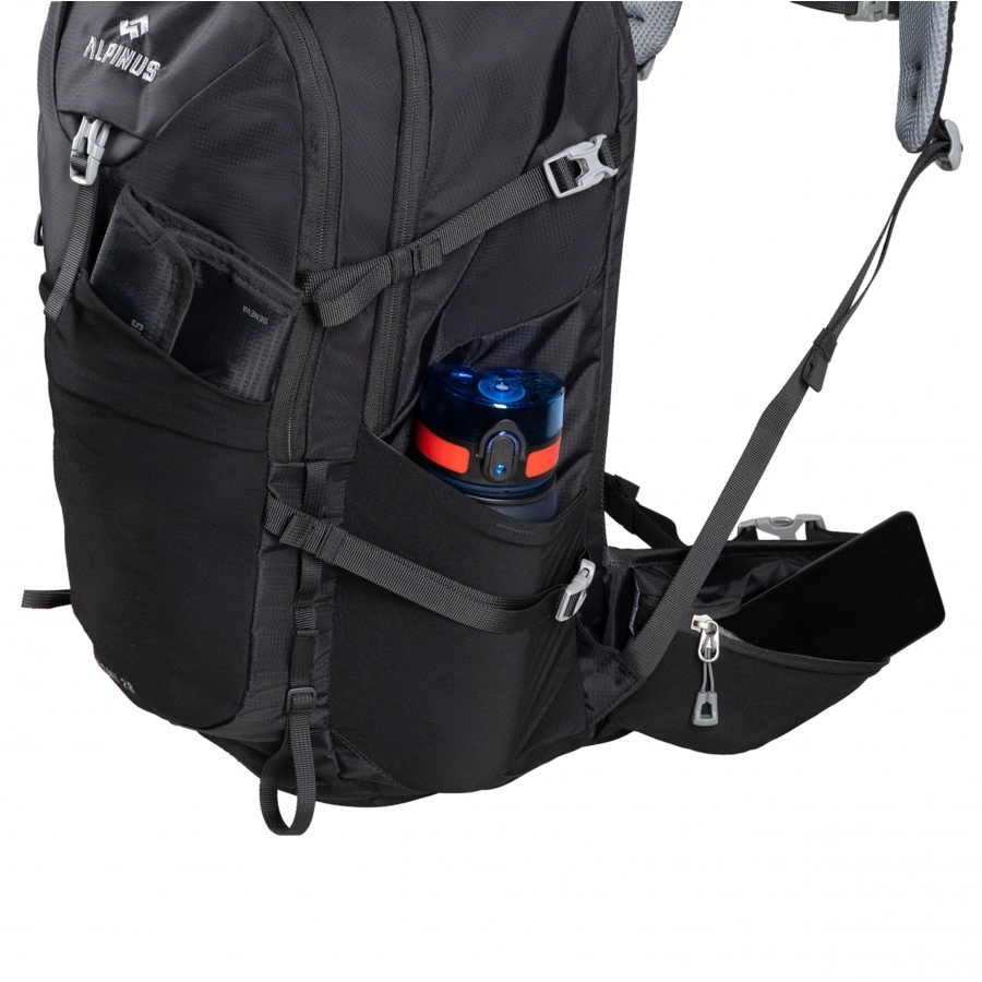 Extras: grommets and straps for carriage of poles or sleeping bag, integrated rain cover, Alpinus Safety reflective elements