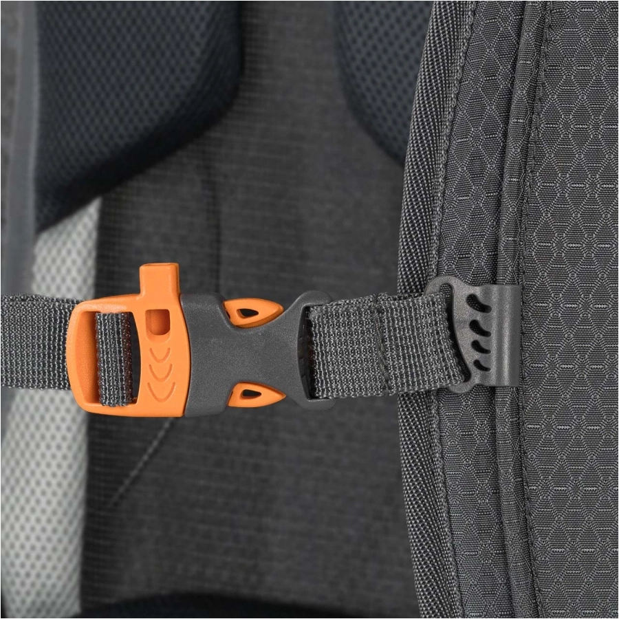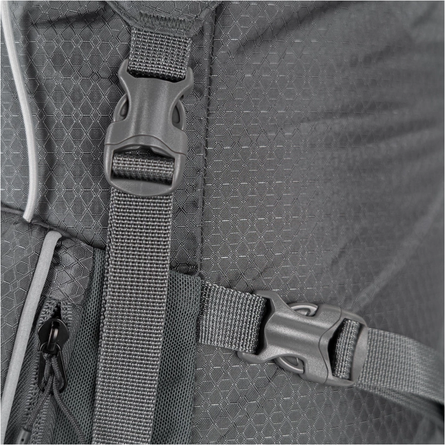 Carrying system with aluminum frame and isolated surface provides excellent back ventilation, even during intense exertion. Sturdy ripstop nylon fabric increases resistance to damage and guarantees long-lasting use, while a flap with a security system minimizes the risk of water getting inside. In case of sudden precipitation, a bright orange-colored cover hidden in the lower compartment will take care of your protection and visibility, even in the most adverse conditions.