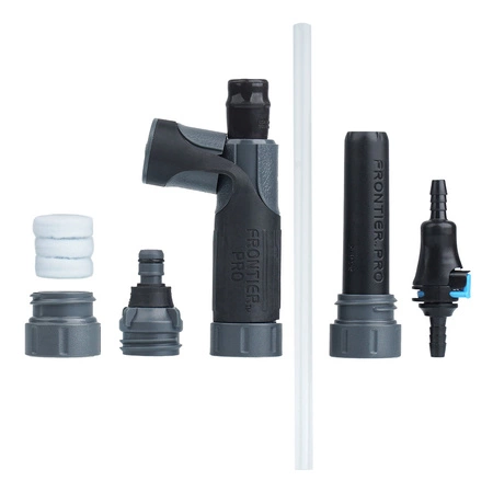 Aquamira - Frontier Pro Ultralight GRN Line water filter can be used in many ways. The filter can be used as a straw and drink directly from the water source. Bite's patented mouthpiece comes with a Cap Strap cover to protect against contamination. Filter can be used by gravity i.e., by plugging it into the tube of a hydration system or into a tube from another gravity tank. The connection is facilitated by the UQC (Universal Quick Connect) connector. The filter can also be connect to a PET bottle with a thread diameter of 28 mm,