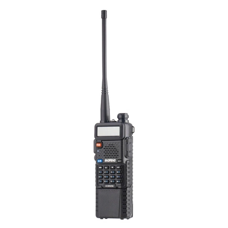 Latest release of the popular UV-5R walkie-talkie from BaoFeng company. It is a dual-band radio already known to a wide audience, distinguished by a redesigned signal antenna and an enlarged 3800 mAh battery, which can be additionally charged via an integrated USB-C port. The maximum power of this walkie-talkie is 5 W, with its usable frequency band being 144-146 MHz for RX and 430-440 MHz for TX.