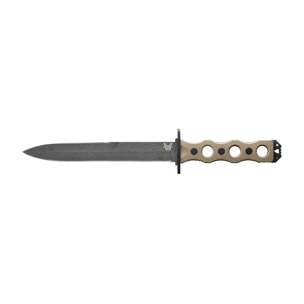 The Benchmade 185BK-1 SOCP tactical knife was developed in collaboration with Greg Thompson the creator of the Special Operations Combat Program (SOCP). The slender blade of the bayonet is made of made of hard CPM-3V tool steel, superior in strength to most steels used in factory knife production. Powdered CPM-3V steel is hardened to a hardness of 60-62 HRC, it is also characterized by tremendous load resistance, resistance to wear, cracking and chipping. The performance of this steel is similar to S7 and A9 premium steel, CPM-3V, it is also a great alternative to A2, D2 and CPM M4. Utility CPM 3V steel is not stainless steel, so it is worthwhile to properly maintain the blade during use. When choosing a knife made of such steel, it is worth getting a diamond sharpener, as sharpening with a standard ceramic whetstone can be very labor-intensive and inefficient.