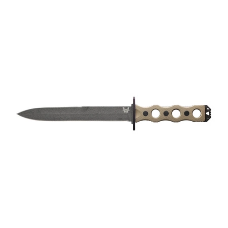 The Benchmade SOCP bayonet features a full-tang (solid mandrel), which means it is made from a single piece of steel. Knives of such construction are extremely resistant to damage and are not afraid of hard work, which is why they are used as combat, survival and hunting knives. The dagger profile head is 180 mm long and 3.8 mm thick, so the bayonet can be used in extreme conditions without worrying about damaging it. Dagger the blade has a cutting edge on both sides and a strong stab, which facilitates penetration and provides excellent cutting properties. The head has a hard-wearing Cobalt Black protective coating that protects against corrosion and prevents glare.