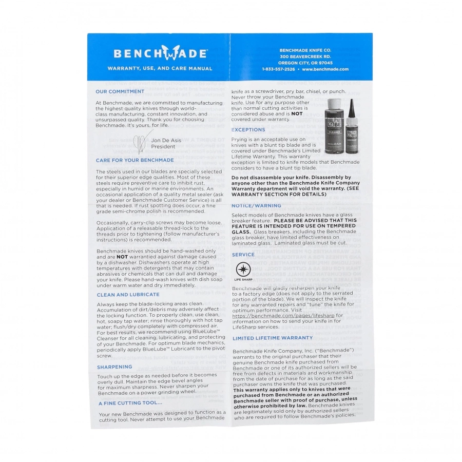 With proper care and regular maintenance, your Benchmade knife will last you a lifetime. Follow these tips to keep it in excellent condition: