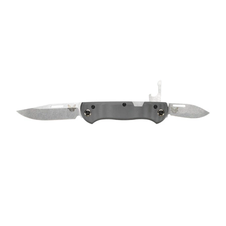 The Benchmade 317-1 Weekender model features stylish G10 facings. The glass-epoxy laminate used is characterized by light weight, high mechanical strength, resistance to water, temperature change, and the action of many acids and solvents. Minimalist facings have a rough texture that improves the knife's grip. The rigidity and strength of the structure is provided by steel reinforcing inserts. Due to the traditional nature of the knife, it does not have a pocket clip.