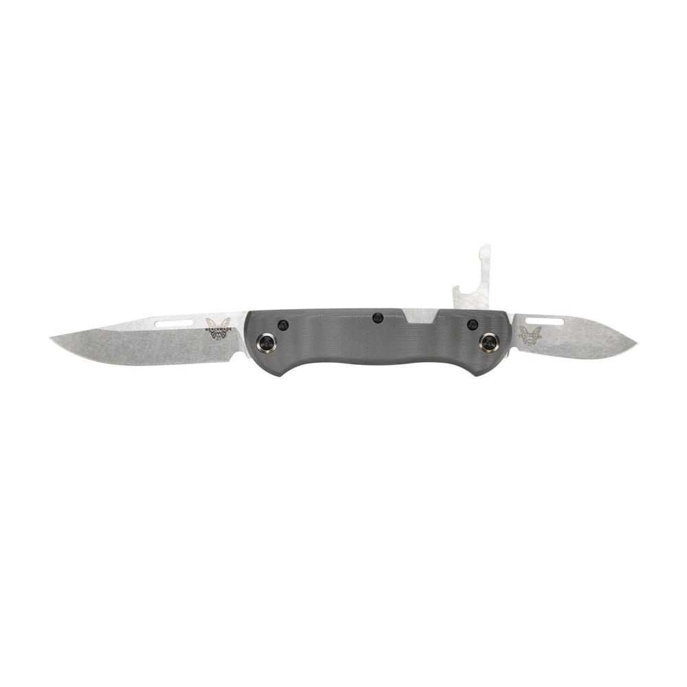 The Benchmade 317-1 Weekender is for people looking for a classic folding knife that they can take into the woods, under a tent or on a camping trip. The knife has two blades of different sizes and a useful bottle opener. The satin-finished drop point and clip-point blades are made of the highly regarded CPM-S30V stainless steel. Powder steel S30V by Crucible Industries hardens to optimal hardness 58-60 HRC, therefore, it maintains high sharpness for a long time, has high mechanical strength, and is also resistant to corrosion. Thanks to its high vanadium carbide content, the steel is distinguished by its high impact strength, abrasion resistance and excellent cutting properties. The blades are finished using the traditional satin-finish technique.