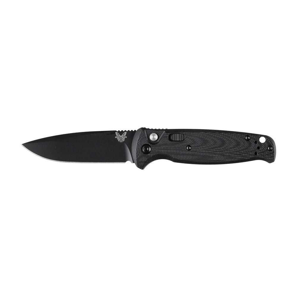 The Benchmade 4300BK CLA is a lightweight automatic knife featuring a CPM 154 stainless steel blade, an enlarged deployment button, and liners made of durable G40 laminate.