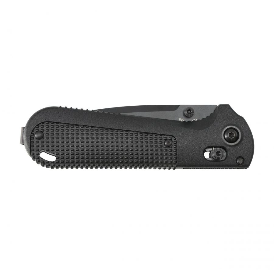 The head can be instantly unfolded with one hand, using a double-sided peg. Thanks to the use of phosphor bronze washers the wedge works smoothly and dynamically. Benchmade's flagship mechanism, the double-sided axis-lock, valued for its tremendous mechanical strength, resistance to dirt, and ease of use for right- and left-handed users.