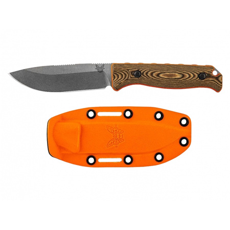 Benchmade 15002-1 HUNT Hidden Canyon Hunter is a large hunting knife for skinning and field work, equipped with a massive blade made of excellent S90V steel, a handle made of natural Richlite laminate and a sheath made of thermoplastic Boltaron.