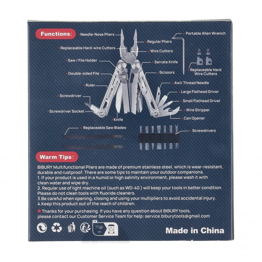 Bibury Pro 19-in-1 Multitool is a practical pocket tool that will work well at home and in the workshop, as well as when hiking or traveling. Made of corrosion-resistant and durable stainless steel 420J2, ensures long life and readiness to work in all conditions.