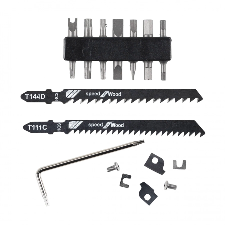 Equipped with 19 functions, involving m.in. pliers, precision pliers, wire cutters, saw, blades, scissors, file, screwdrivers, and openers, the Bibury Pro multitool allows you to quickly perform small repairs or service work. Also included are 3 interchangeable bits, which can be mounted on a folding mandrel.