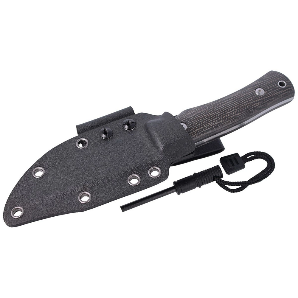 The full tang fixed-head knife awakens the spirit of discovery and impresses with its solid 440C Harpoon blade, which has a solid stonewash finish. Handle made of textured micarta is non-slip in the hand. The knife comes with a lanyard hole and a precision-fitted Kydex scabbard.