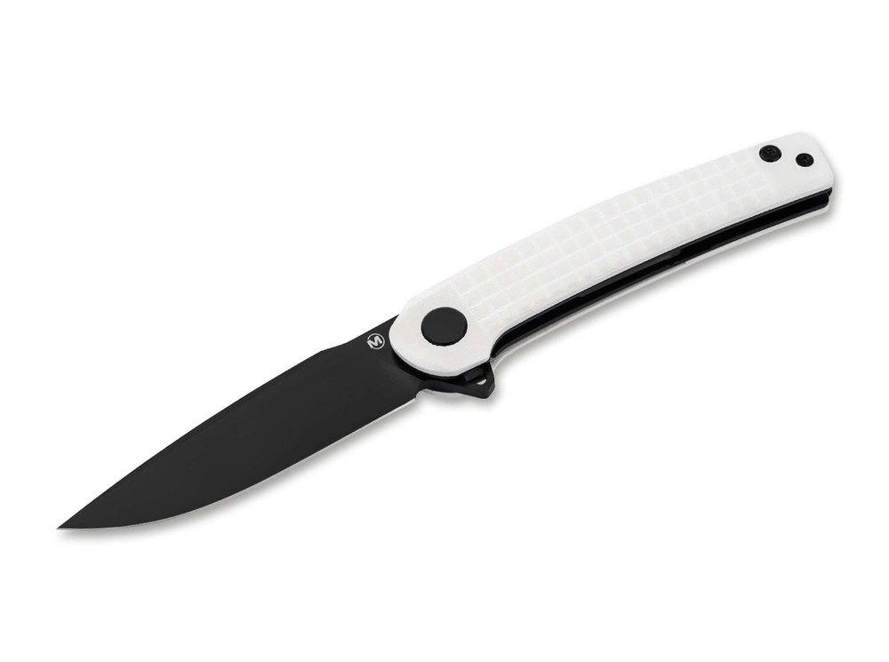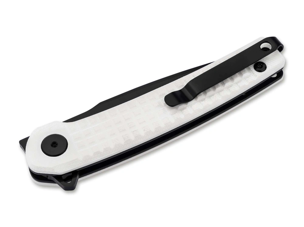 Handle with G10 in a contrasting black and white finish, it combines grip comfort with sophisticated style, fitting in with the EDC aesthetics.
