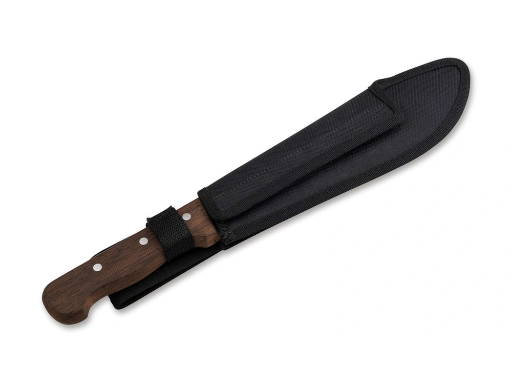 Handle made of wenge wood, reinforced with three rivets, provides a stable and secure grip in all field conditions. The kit includes fitted nylon scabbard, making it easy to carry the machete and use it safely.