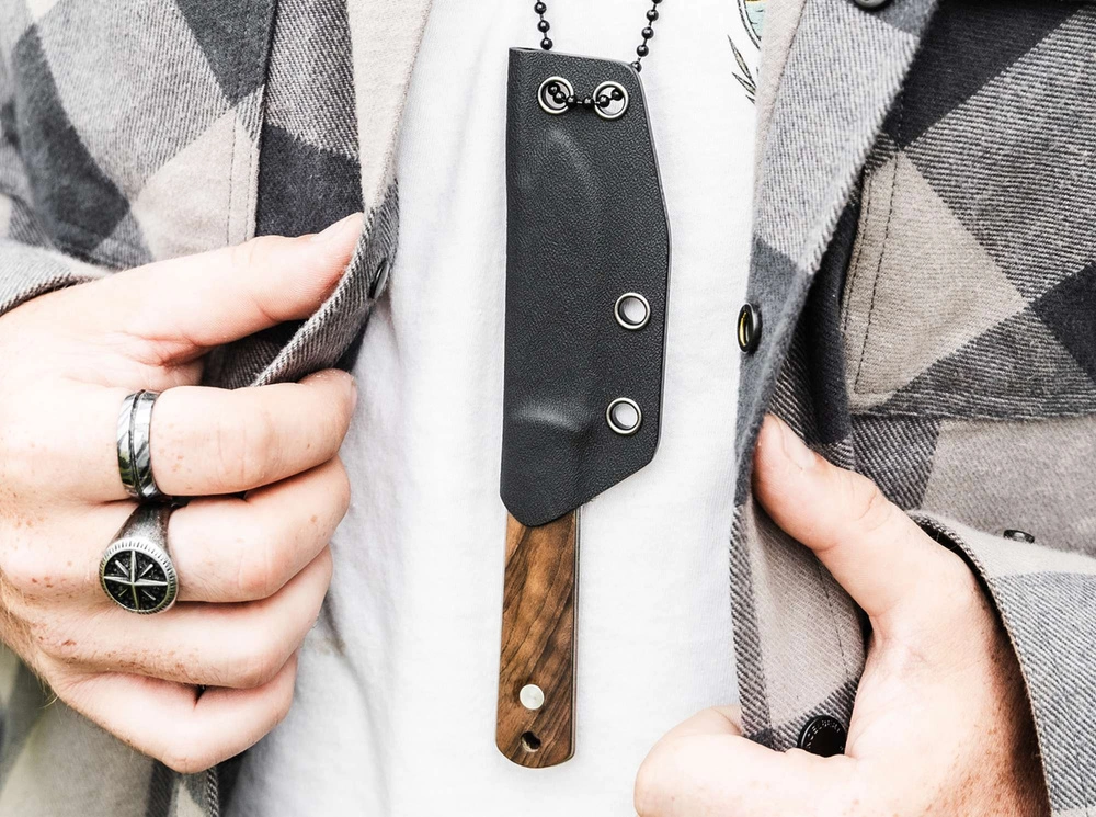 Minimalist design with maximum commitment - Burnley in its purest form, purist, for an unlimited spirit of discovery. American knife maker Lucas Burnley expands the successful Barlow BFF series with a feather-light skeletonized knife, the Boker BFF Lightweight with removable handle scales made of local walnut wood. Rugged steel construction with stonewash-finished drop-point blade made from MagnaCut powder metallurgy (62-63HRC) for maximum stability and superior cutting performance. Tough, durable, corrosion-resistant and rugged - no blade can provide greater performance. The elegant ricasso and prominent tabs on the back of the blade complement the agile nature of the fixed blade, both visually and functionally. The designer's post-tactical concept has been stylishly implemented in the weight-reducing recesses in the handle, highlighting the tactical requirements as a full-fledged neck knife with additional attachment options. EDC, tactical or as a backup knife - the BFF Lightweight is versatile enough not to be tied down and is always open to new tasks. Comes with a well-fitted Kydex scabbard and ball chain. Handmade in the Boker manufactory in Solingen.