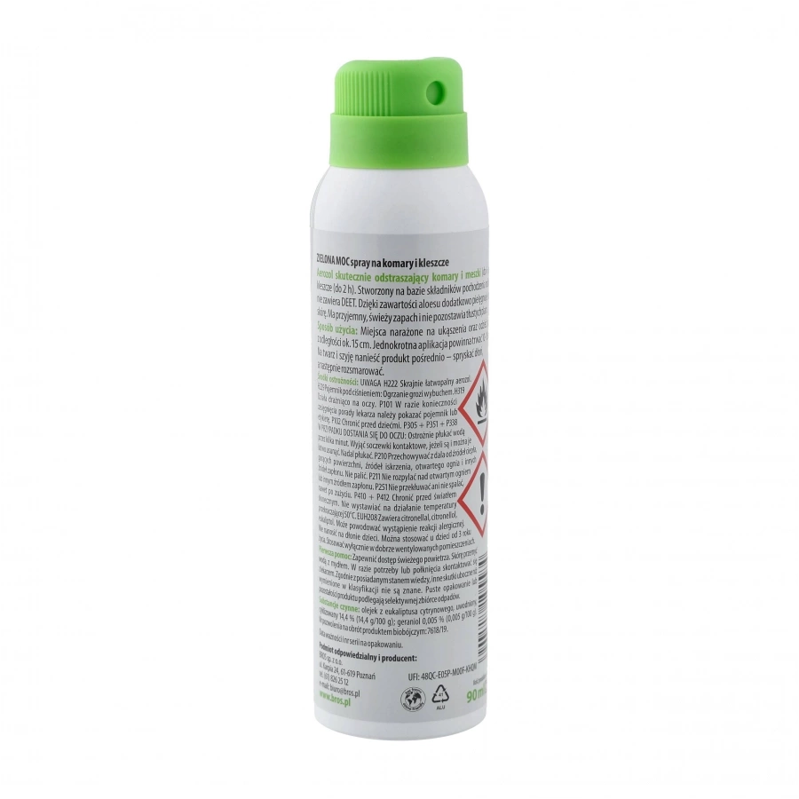 The product uses active substances of plant origin, making it an excellent alternative to synthetic repellents. Bros Green Power spray effectively repels mosquitoes and midges for up to 6 hours and ticks for up to 2 hours, providing long-lasting protection during outdoor activities.