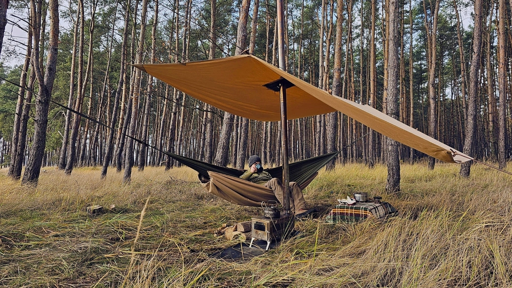 A hammock hookup: elastic cords allow for easy installation, effectively protecting from underneath the winding.