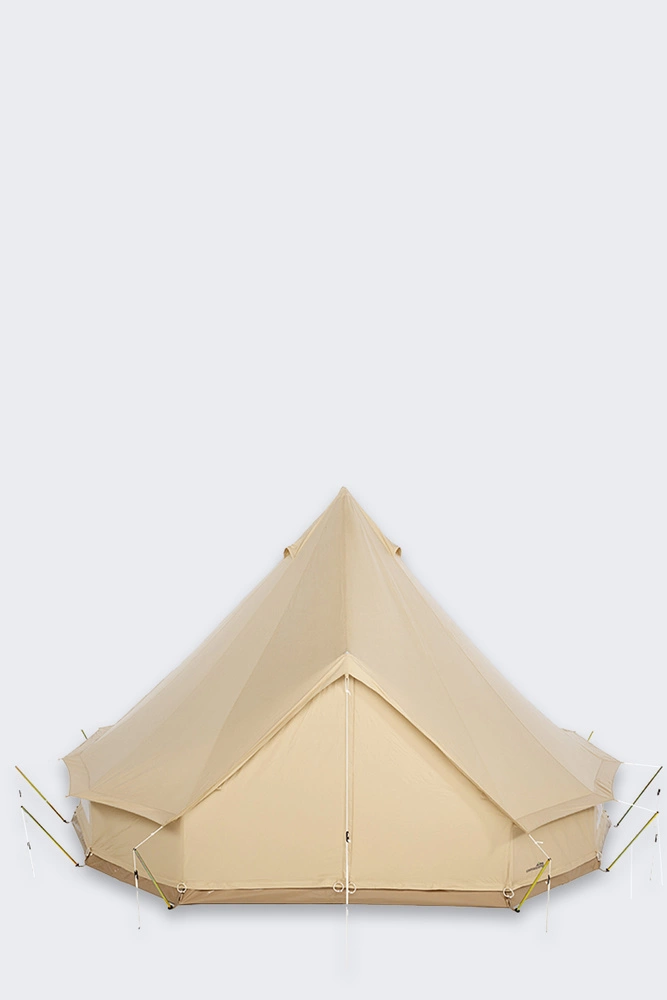 Classic design guarantees stability in a variety of conditions, effectively protecting against rain, wind and sunshine. The tent can withstand months of standing in water up to 5 cm deep without leaks. Door with integrated mosquito net protects against insects and is easy to operate thanks to quick-release fasteners. Reflective UV-resistant extraction lines, nickel-plated steel tripod frame and forged steel pegs confirm the professional nature of the design. Lashing arches with a rope system minimize the area needed to set up the tent, giving the user more freedom in choosing the camping site. Two cutouts in the bottom corners of the door make it easy to run cables, and the ability to install the vents and kitchen outlets yourself gives you full flexibility to customize the tent to your needs.