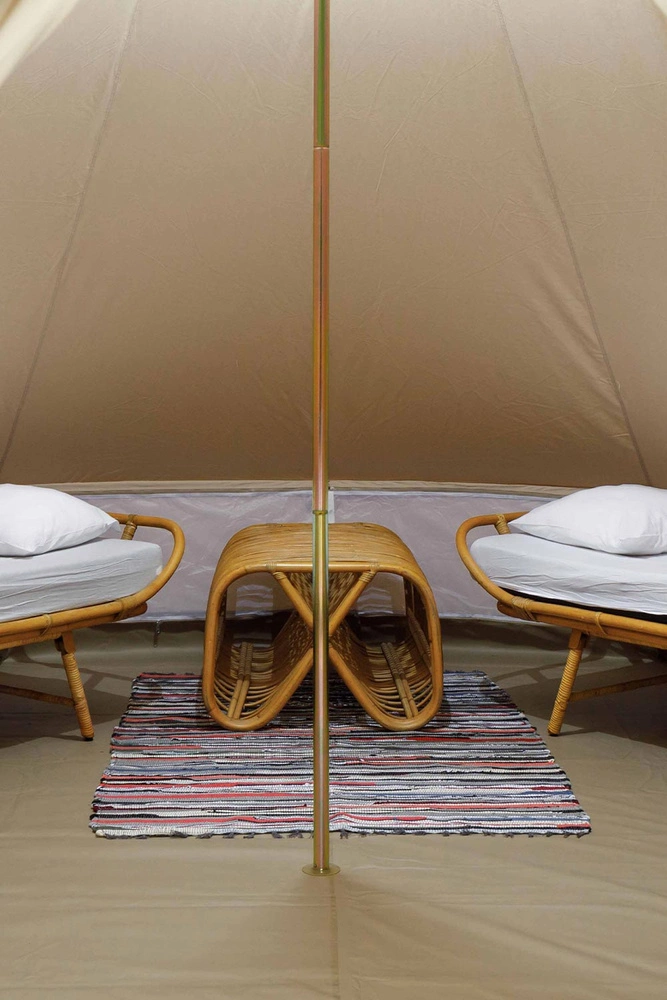 A colorful tent rug is a simple and inexpensive way to decorate your tent. It adds style and an extra layer of cushioning, transforming any camping tent into a "glamping" tent. With vibrant colors and unique patterns, this rug brings a cozy atmosphere to your tent, perfect for relaxing after an adventurous day. Made from recycled materials, it is not only aesthetically pleasing, but also environmentally friendly, making it an excellent choice for environmentally conscious campers.
