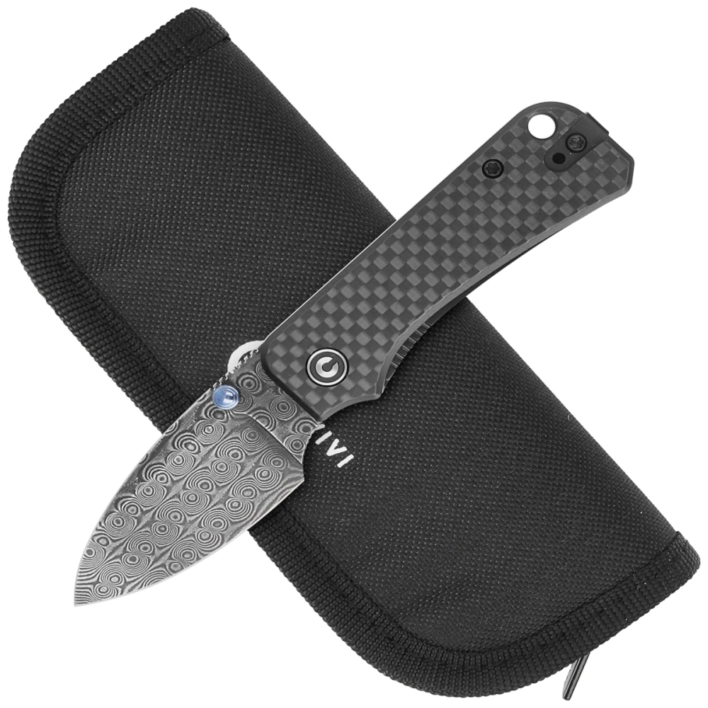 Civivi Baby Banter Knife Black Twill Carbon Fiber Overlay On Black G10, Black Hand Rubbed Damascus by Ben Petersen (C19068S-DS1)