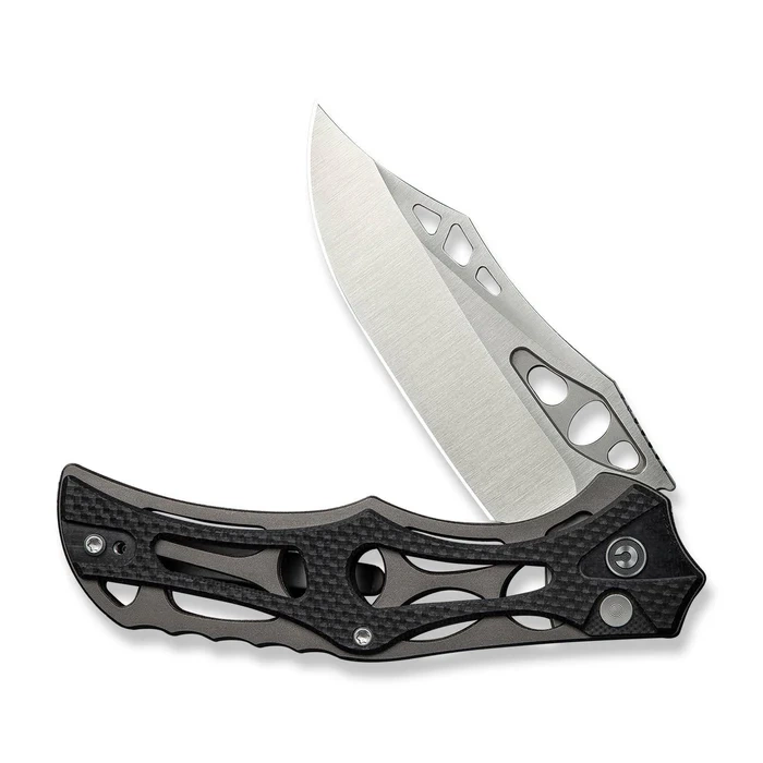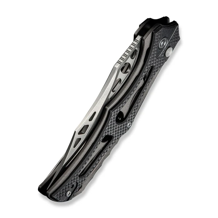 Large universal folding knife with avant-garde design. Nitro-V stainless steel head, skeletonized aluminum and G10 composite liners. Extremely secure grip!
