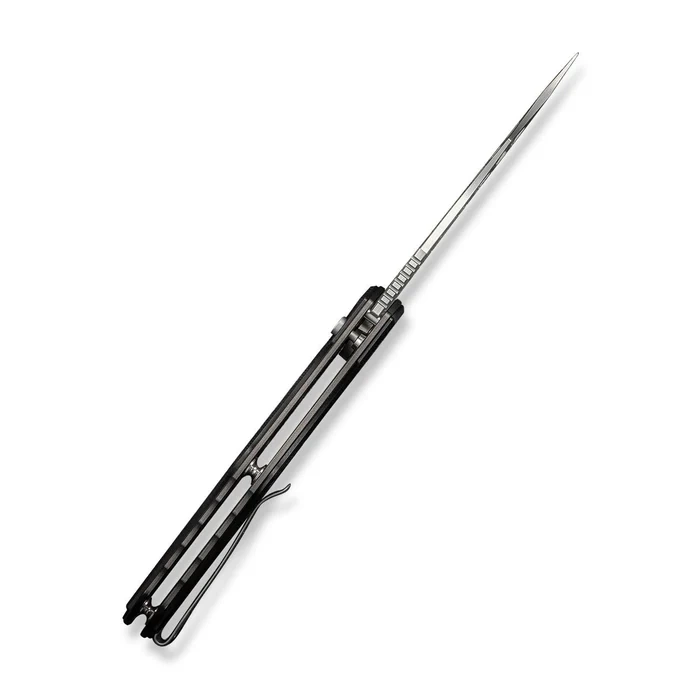 Handle - frame, made of aluminum, to which the heavily cut composite facings were screwed G10. This gives the fingers plenty of support points for a firm grip. The fore finger groove made on the front improves ergonomics. Open design tzw. open-backed mounted with steel spacer sleeves reduces weight and makes cleaning easier. Simple, secure design provides assurance of many years of use. Thanks to all these design measures, the full-size folder reaches a staggering 75g in weight. Axis pivot is decorated with a stylized brand logo Civivi. Two-position (right/left), clip deep carry allows you to carry the knife discreetly in your pocket in the tip-up (blade tip up).
