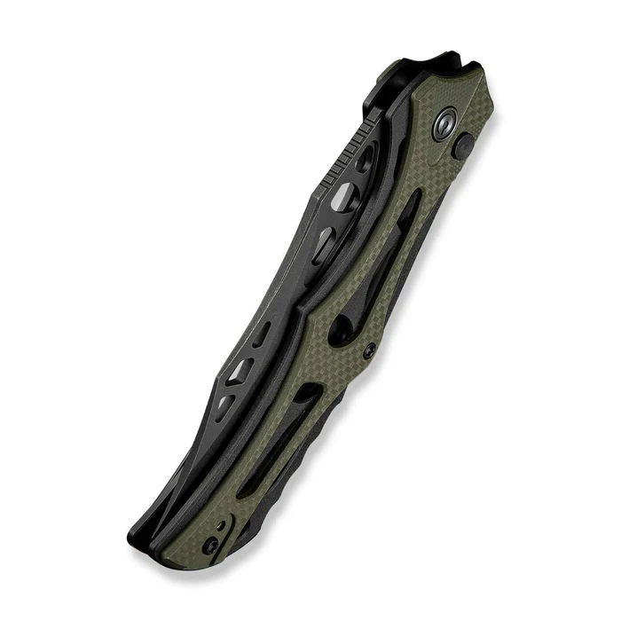 - Biophase Black Aluminum / OD Green G10, Black Stonewashed large all-purpose folding knife with avant-garde styling. Nitro-V stainless steel head, skeletonized aluminum and G10 composite liners. Extremely secure grip!