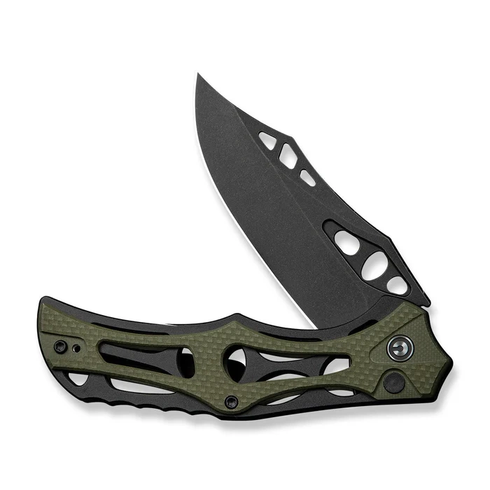 Handle - frame, made of aluminum, to which the heavily cut composite facings were screwed G10. This gives the fingers plenty of support points for a firm grip. The fore finger groove made on the front improves ergonomics. Open design tzw. open-backed mounted with steel spacer sleeves reduces weight and makes cleaning easier. Simple, secure design provides assurance of many years of use. Thanks to all these design measures, the full-size folder reaches a staggering 75g in weight. Axis pivot is decorated with a stylized brand logo Civivi. Two-position (right/left), clip deep carry allows you to carry the knife discreetly in your pocket in the tip-up (blade tip up).