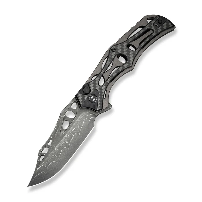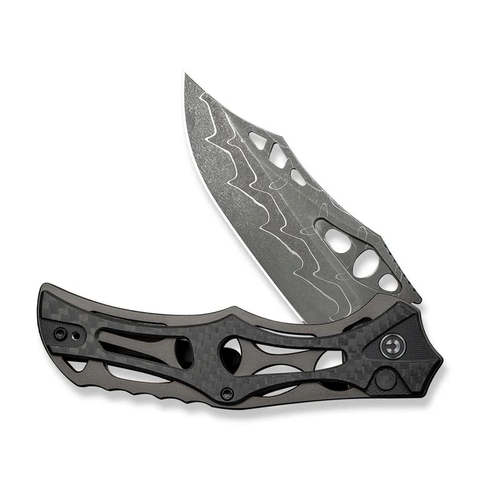 - Biophase Gray Aluminum / Carbon Fiber / Black G10, Damascus large all-purpose folding knife with avant-garde styling. Stainless damast head, skeletonized aluminum and carbon fiber composite facings on black G10. Extremely secure grip!