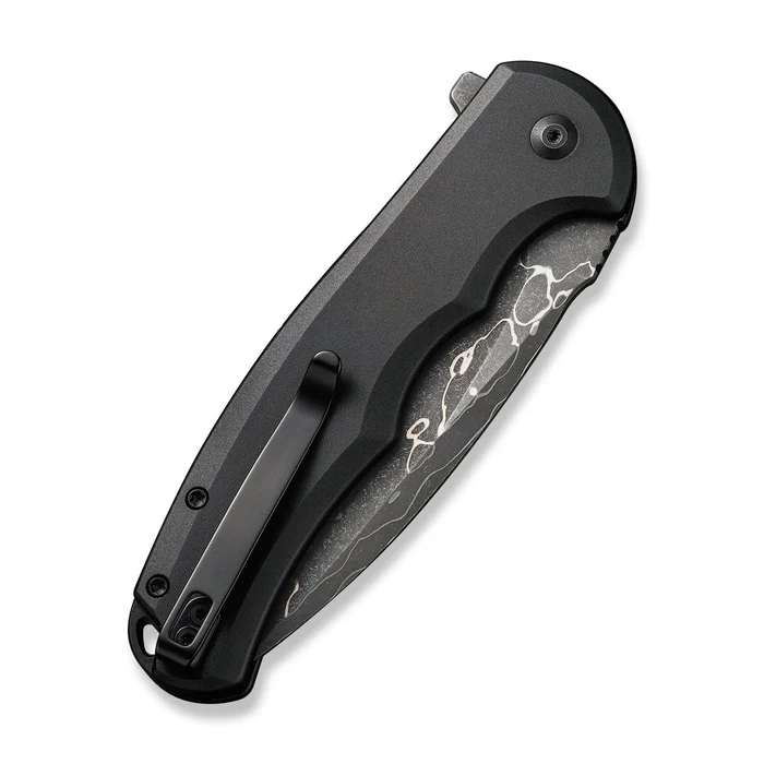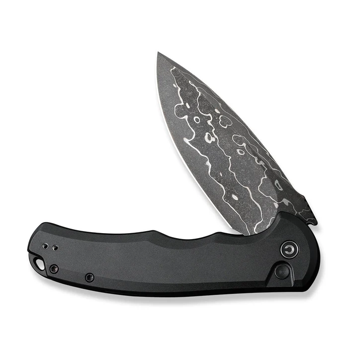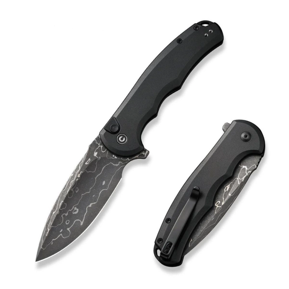 Civivi Button Lock Praxis Black Aluminum Folding Knife, Damascus (C18026E-DS1)