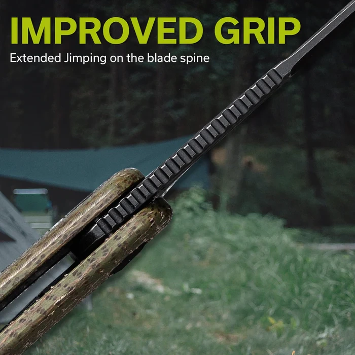 A slim, full-size folder that opens two ways with a milled double-sided nail nick or flipper fins, and with the support of ceramic ball bearings the action of the blade opening mechanism is extremely smooth. Exceptional knife EDC offering an excellent ratio of quality to price with an ergonomic handle that fits the shape of the hand, ending in a slight spline for a better grip.