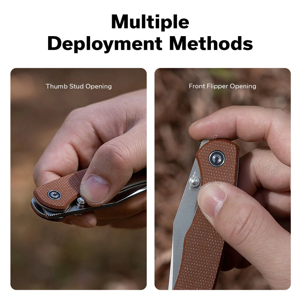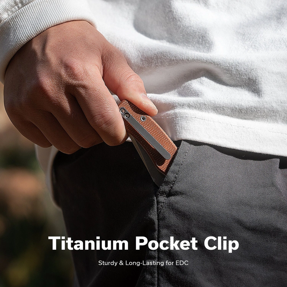 Civivi Clingman Brown Canvas Micarta Folding Knife, Black Stonewashed Nitro-V by Taylor Martin Best Damn EDC (C23065-3)