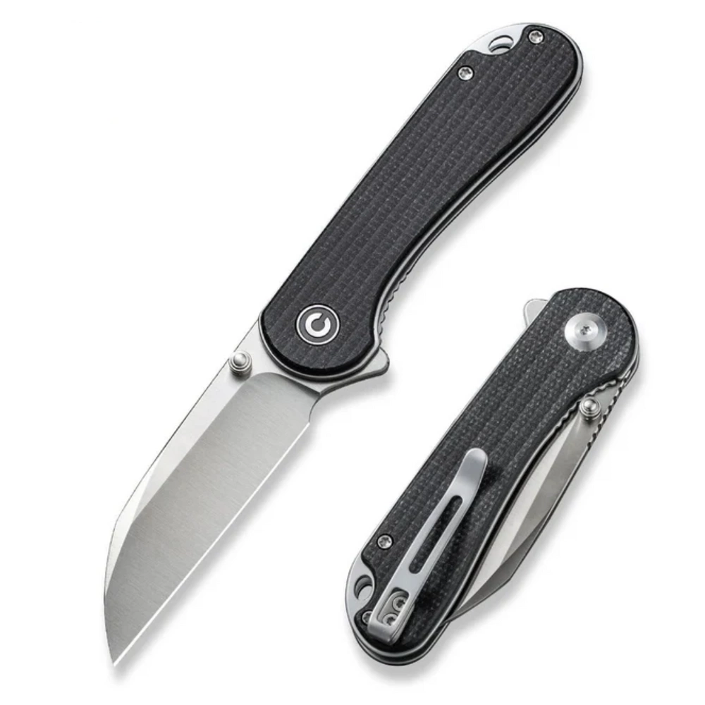 Civivi Elementum Wharncliffe Black Canvas Micarta Folding Knife, Satin Nitro-V (C18062AF-3)