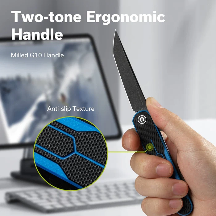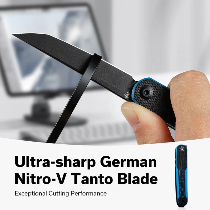 Civivi KwaiQ Blue/Black G10 Folding Knife, Black Stonewashed Nitro-V by Rafal Brzeski (C23015-3)