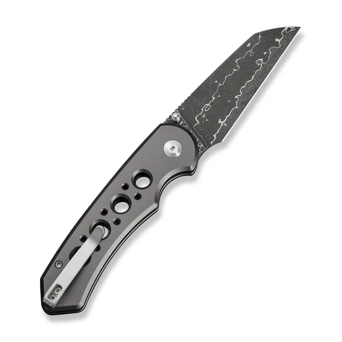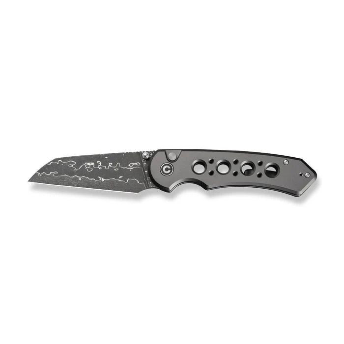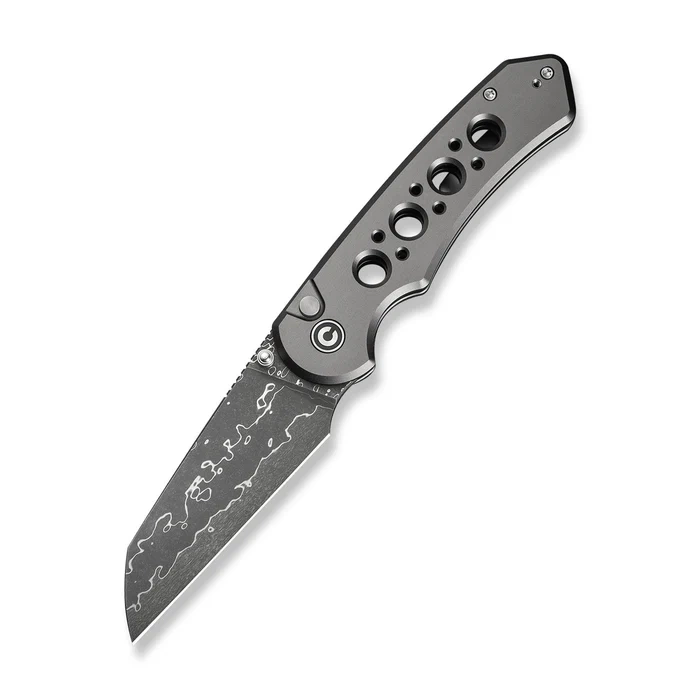 - Pragma Prime Gray Aluminum, Damascus - slim Civivi EDC folder with Wharncliffe profile Damascus steel head, comfortable aluminum handle, intuitive button lock. Ergonomics and precision in a compact form.