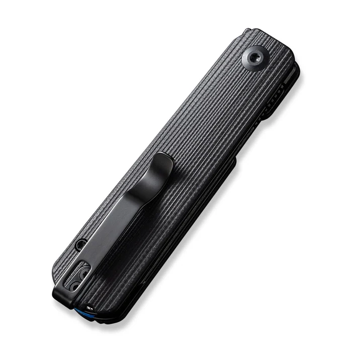 Handle - rough facings of G10 (fiberglass compressed under pressure with synthetic resin), which were bolted to the steel liners. Backspacer made of G10 to which the facings are attached guarantees the rigidity and strength of the entire structure. Simple, sturdy construction provides assurance of many years of use. Axis pivot is decorated with a stylized brand logo Civivi. Two-position left/right metal clip deep carry allows you to carry the knife discreetly in your pocket in the tip-up (blade tip up). On the back of the handle in the recesses between the micarta and the steel liner are hidden very useful tools in the field, steel tweezers and a toothpick.