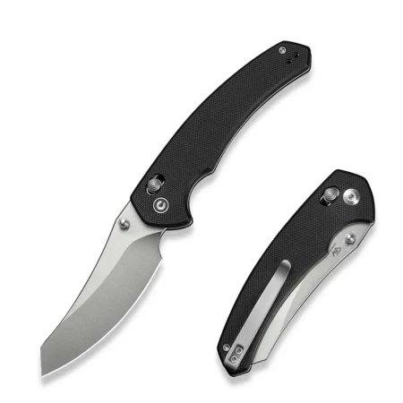 Handle - made of G10 composite, a virtually indestructible material, insensitive to weather conditions, resistant to chemicals and mechanical damage. Beveled edges of the covers eliminate sharp edges, and the rough texture and surface patterning increase grip comfort and confidence. The open-backed design, which is attached with steel spacer sleeves, reduces weight and makes cleaning easier. The pivot axis is decorated with the stylized Civivi logo. The two-position, right/left-handed deep carry clip allows you to carry the knife discreetly in your pocket in a tip-up position (with the tip of the blade facing upwards).