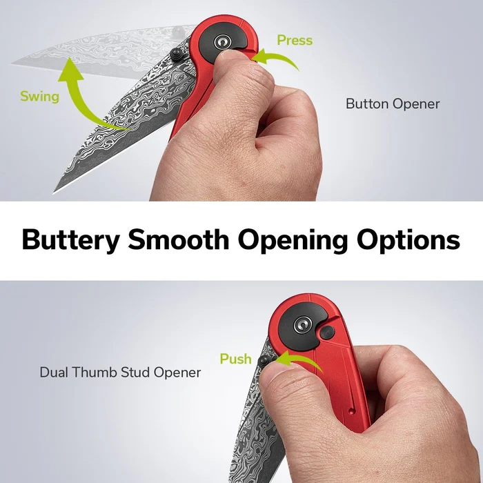 - Starflare Red Aluminum, Damascus universal folding knife E.D.C. Wharncliffe blade made of damast with unique design, ergonomic handle made of aluminum. The compact size of this tool will allow you to take it with you everywhere!