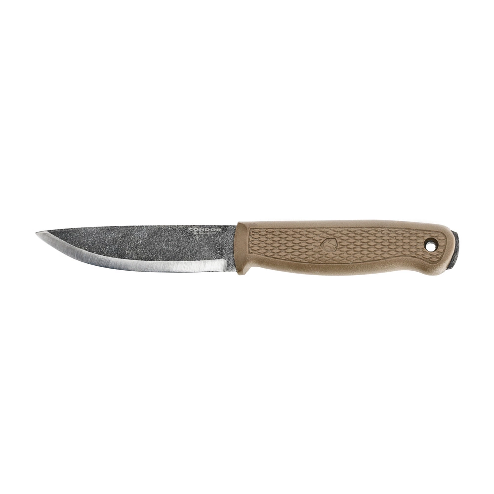 Condor Terrasaur knife has everything a good bushcraft knife should have. Full-tang construction, head with 3 mm thick made of 1095 carbon steel that holds its sharpness for a long time, scandi cut, polymer handle that fits comfortably in the hand.