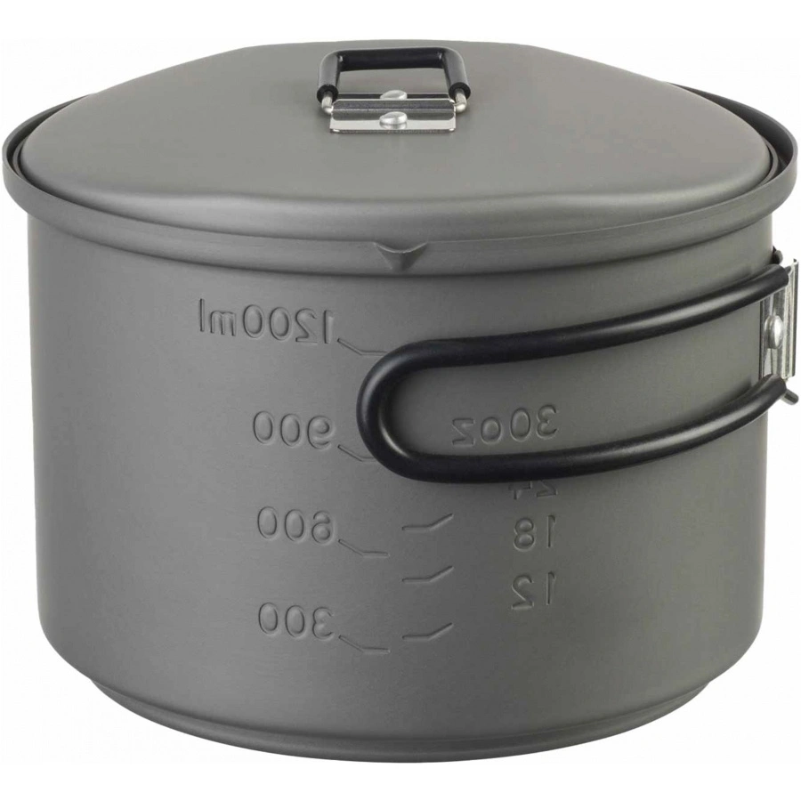 Pot: 1.5 l, anodized aluminum with graduation in ml and oz