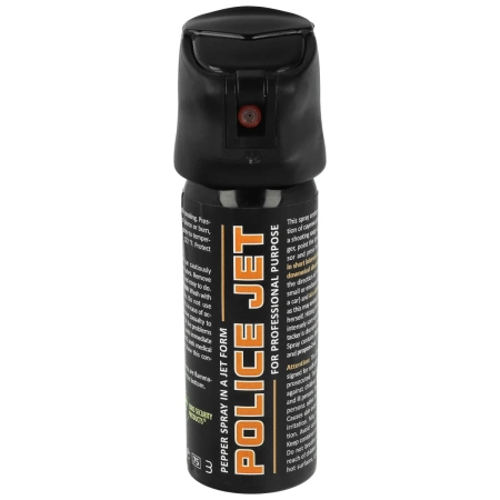 Police Jet is a pepper gas with increased irritant content. Concentration of active substance 15% OC (Oleoresin Capsicum) of which 4% MC (Major Capsaicinoids). Contains an incapacitating agent in the form of a jet. Enables effective defense against an attacker/group of attackers, including those under the influence of alcohol or psychoactive drugs, and against aggressive animals. Capacity 50 ml.