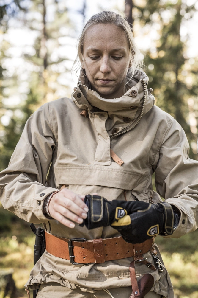 On both sides of the lane are leather loops, thanks to which it can act as a simple harness - for example, for pulling expedition sleds or transporting game. The model is fully compatible with Fjällräven's leather bag and case system, which allows you to build a complete hunting or bushcraft kit (bags available separately).