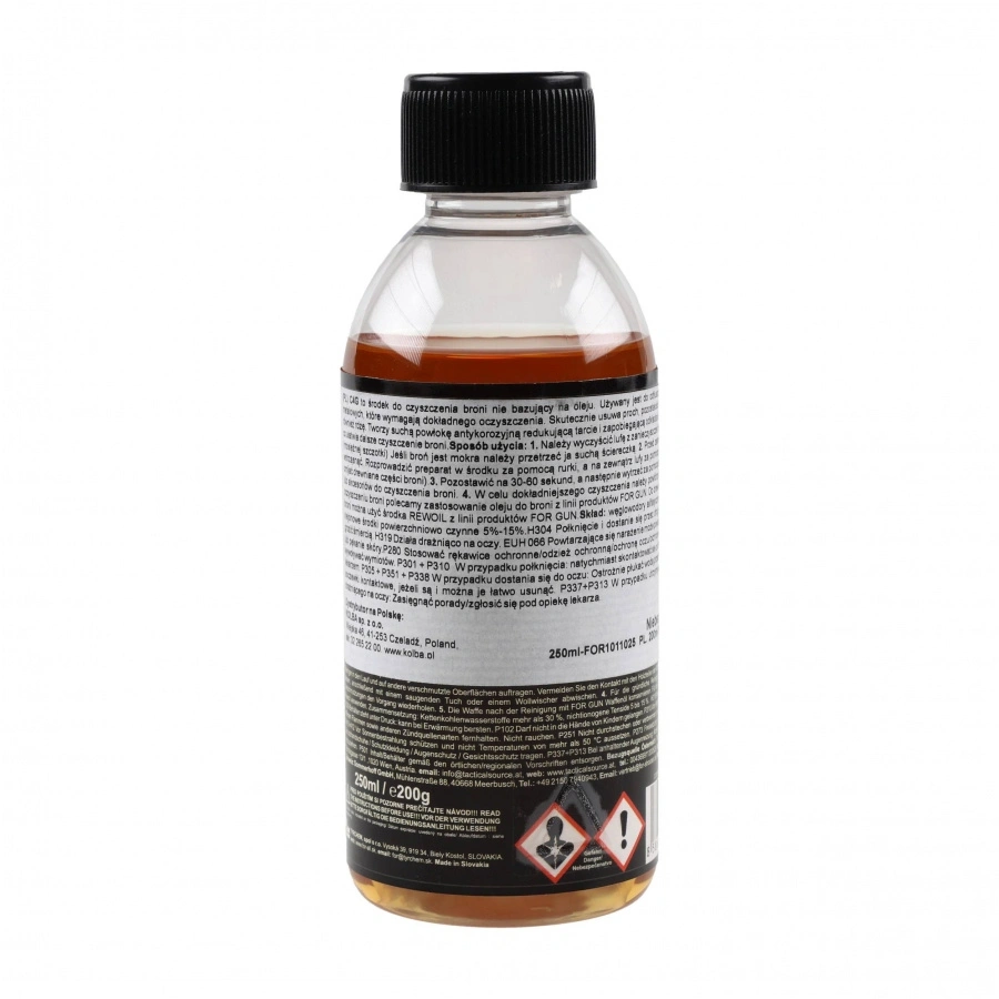 FOR C4G is a professional gun cleaning fluid, designed for precision degreasing and thorough removal of contaminants without the use of oil. The preparation effectively eliminates gunpowder residues, lead and copper deposits and traces of rust, restoring weapons to perfect technical condition. Any cleaning with FOR C4G is greater reliability, smoother operation of mechanisms and higher safety of use.