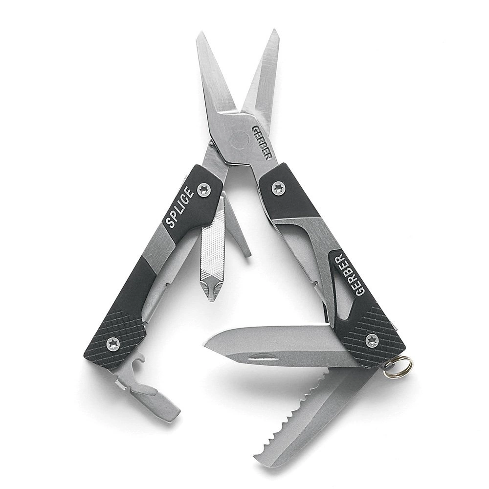 Splice is a pocket-sized multitool manufactured by the renowned Gerber brand. The multitool has a comfortable aluminum handle housing a set of everyday useful tools. What sets this model apart from its competitors is the use of large scissors where in similar multitools there are pliers.