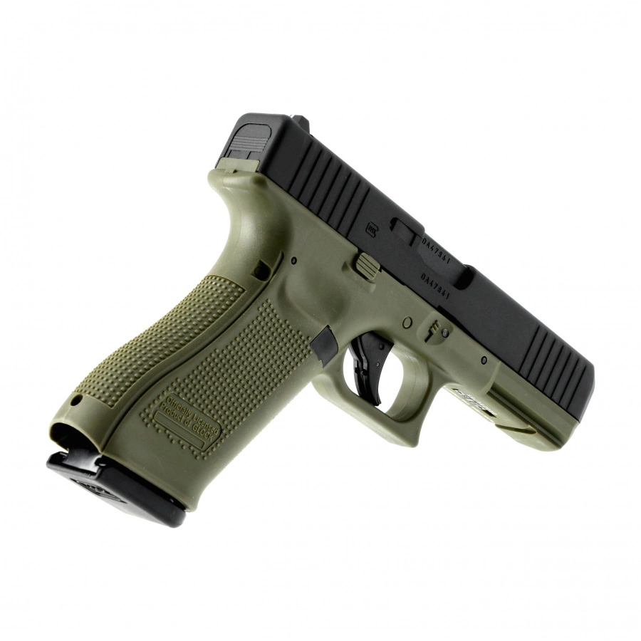 Glock 17 Generation 5 is a licensed ASG replica in caliber 6 mm, based on modern polymer backbone and equipped with metal lock with a realistic system Blow-Back. Capsule supply CO₂ provides dynamic and repeatable performance. The model is presented in color green/black.