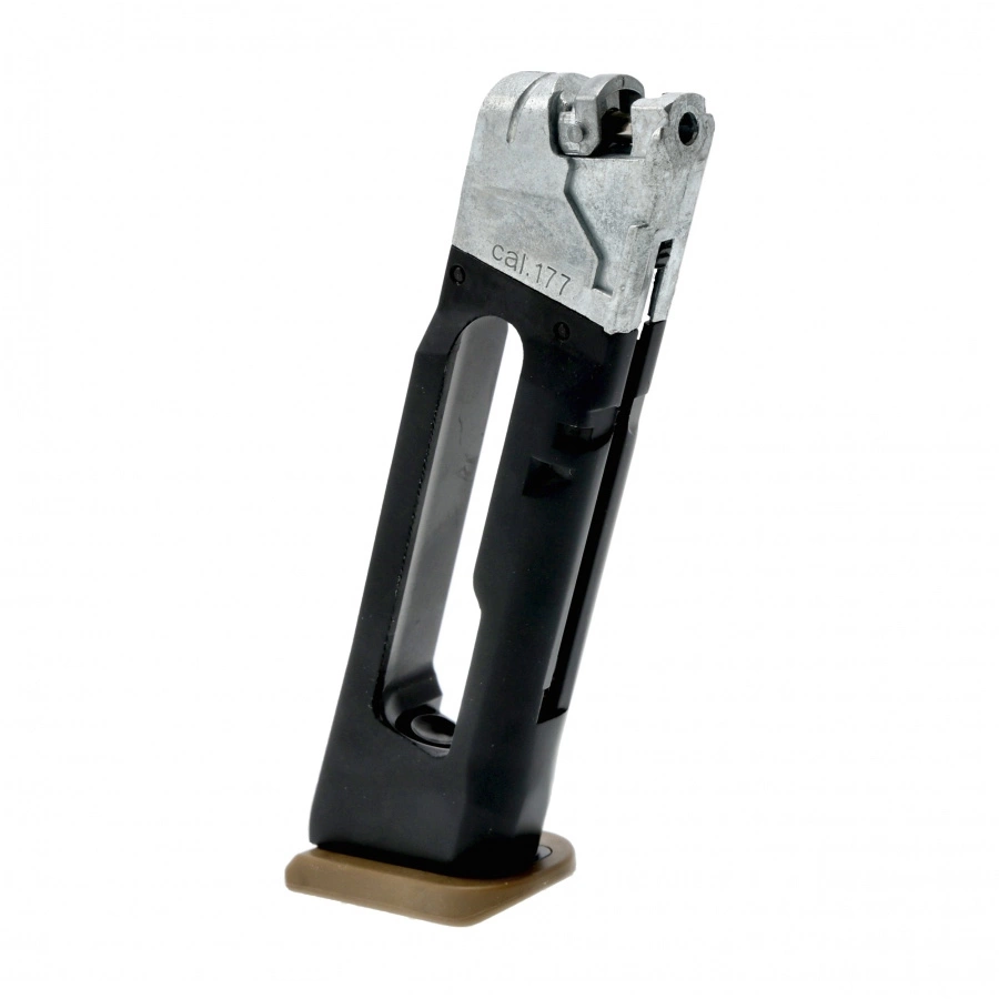 Replacement magazine for the Glock 17 Gen air pistol.5 with capacity 18 shot 4.5 mm. Designed exclusively for Glock air rifles, made from a combination of metal and durable polymer. The magazine also serves the function of cO₂ gas tank, equipped with an appropriate valve. Donor with edge facilitates quick and convenient loading.