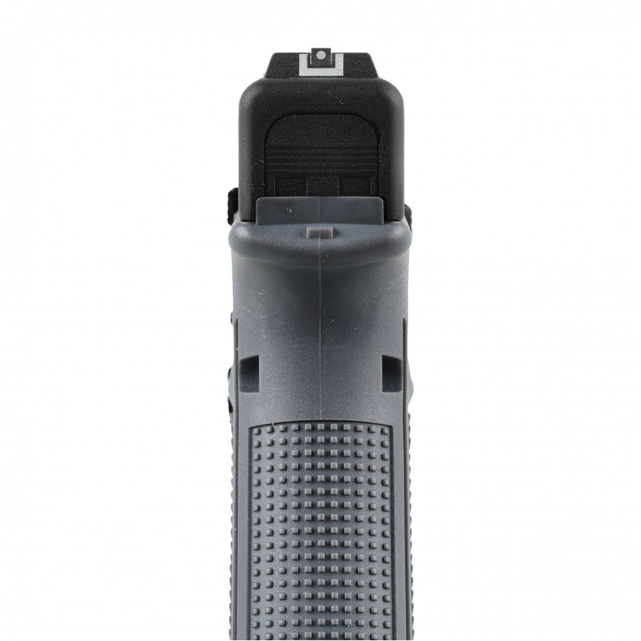 The replica retains all the essential features of the combat Glock 17 Gen 5. It features a two-sided dummy breech drop, enlarged magazine button and an integrated funnel for easy magazine changes. The non-slip texturing of the frame guarantees a secure grip, and the gun's dimensions allow the use of standard holsters such as Safariland or Blackhawk.