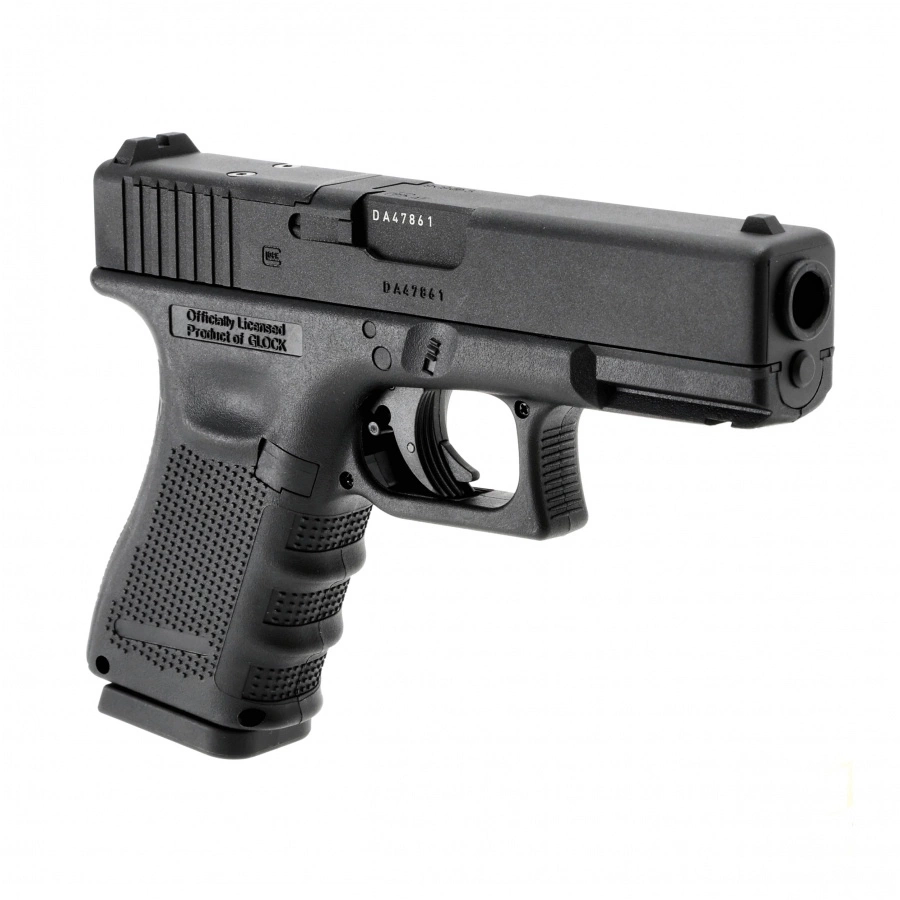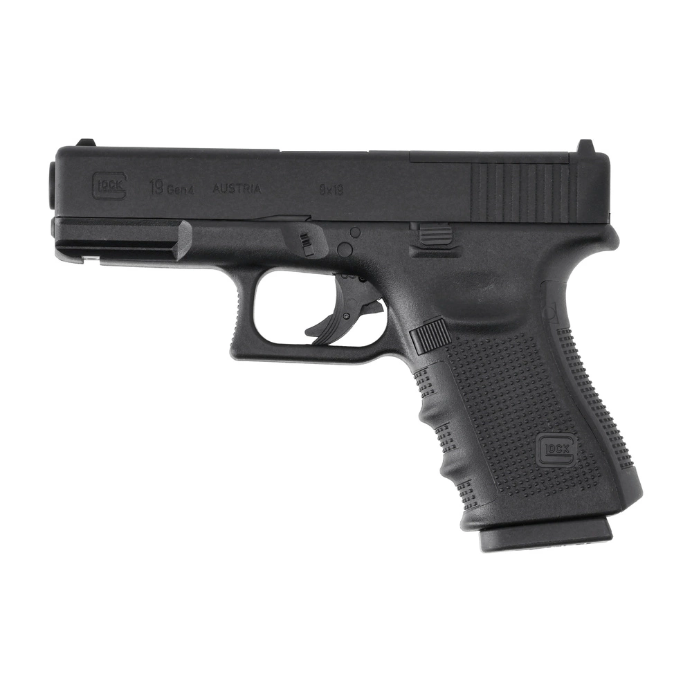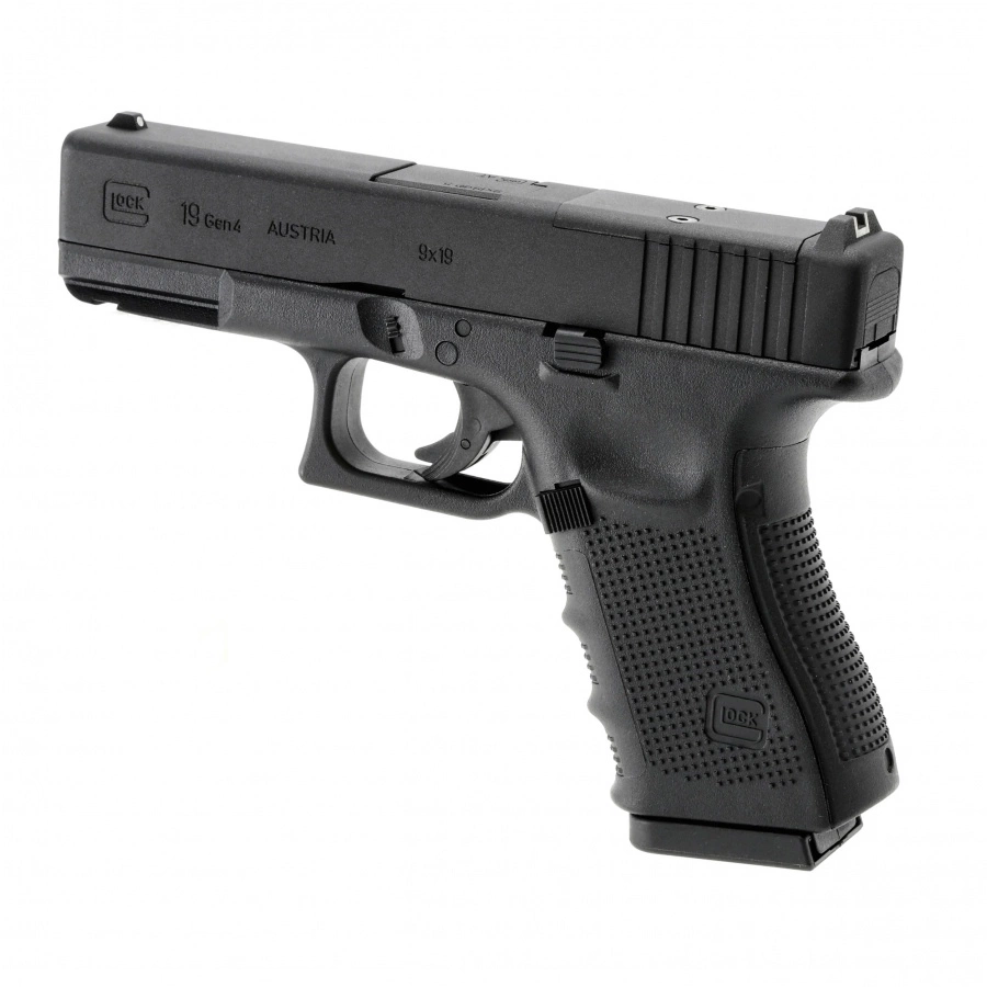A replica of the Glock 19 Gen 4 pistol in the MOS version