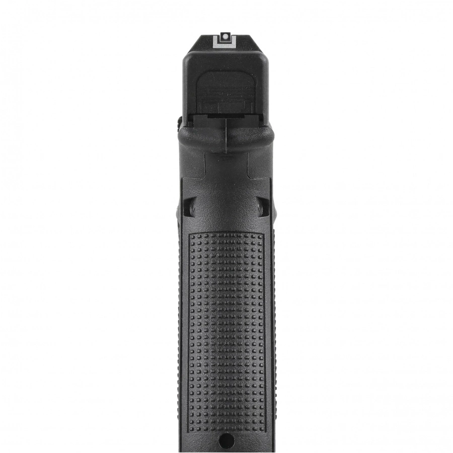The replica has classic Glock sighting instruments with white dots to facilitate quick alignment of the musket and the pinnip. Under the barrel there is a 22mm Picatinny rail, allowing you to mount a flashlight or laser sight.